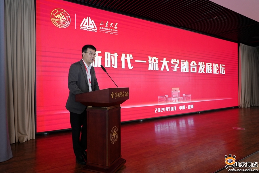 王浩在致辞中表示,山东大学威海校区作为山东大学融合发展的典范,为助力山东强省建设发挥了重要作用。本次论坛既是落实全国教育大会的具体举措,也是一次思想碰撞和智慧交流。期待与会专家学者畅所欲言,共同探讨高等教育融合发展之路,为加快建设教育强国、科技强国提供更多具有前瞻性和可操作性的方案,与山东省共同深入推动高等教育高质量发展,奋力书写教育强国建设支撑引领中国式现代化的新篇章。