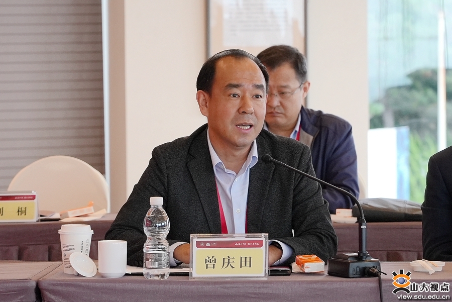 北京交通大学威海校区管委会常务副主任刘颖、中国海洋大学副校长王雪鹏、曾庆田、威高集团有限公司总裁龙经先后围绕融合发展主题,结合多校区办学模式、特色发展、校地融合、产教融合、科教融合、成果转化应用等实践交流了相关经验。