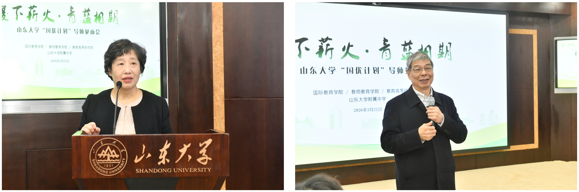 3月22日上午,山东大学2026级“国优计划”导师见面会成功举办。本次活动以“稷下薪火·青蓝相期”为主题,旨在搭建导师与学生之间的沟通桥梁,助力学生明确学业规划与发展方向,推动“国优计划”高质量实施。