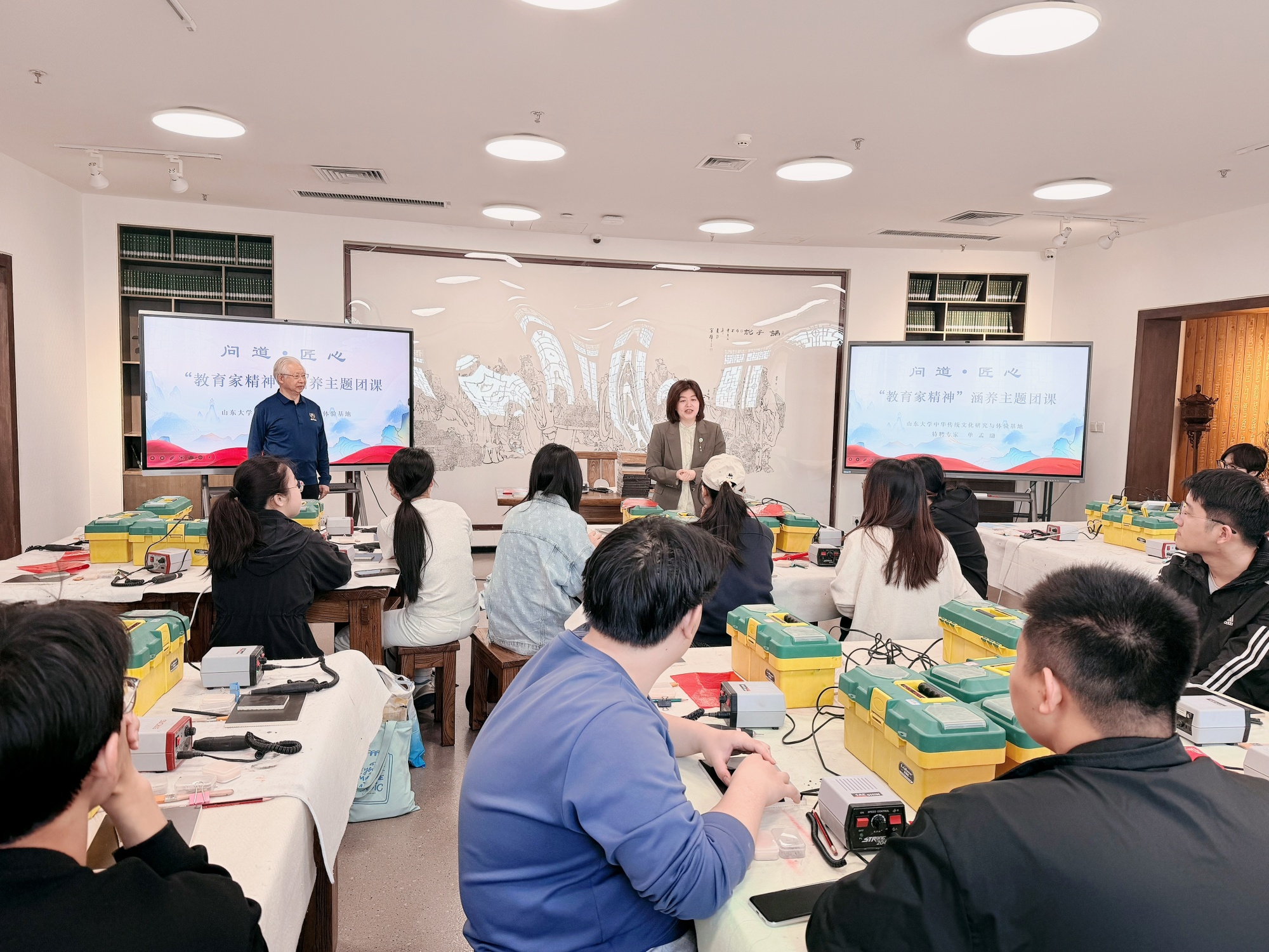 3月29日,2026级“国优计划”学生“问道·匠心”教育家精神主题团课学习,邀请中华传统文化研究与体验基地特聘专家、非遗传承人单孟渤老师与“国优计划”学生共话“工匠精神”与“育人初心”。国际教育比分直播院长、教师教育比分直播常务副院长马晓乐出席并与同学们互动交流。