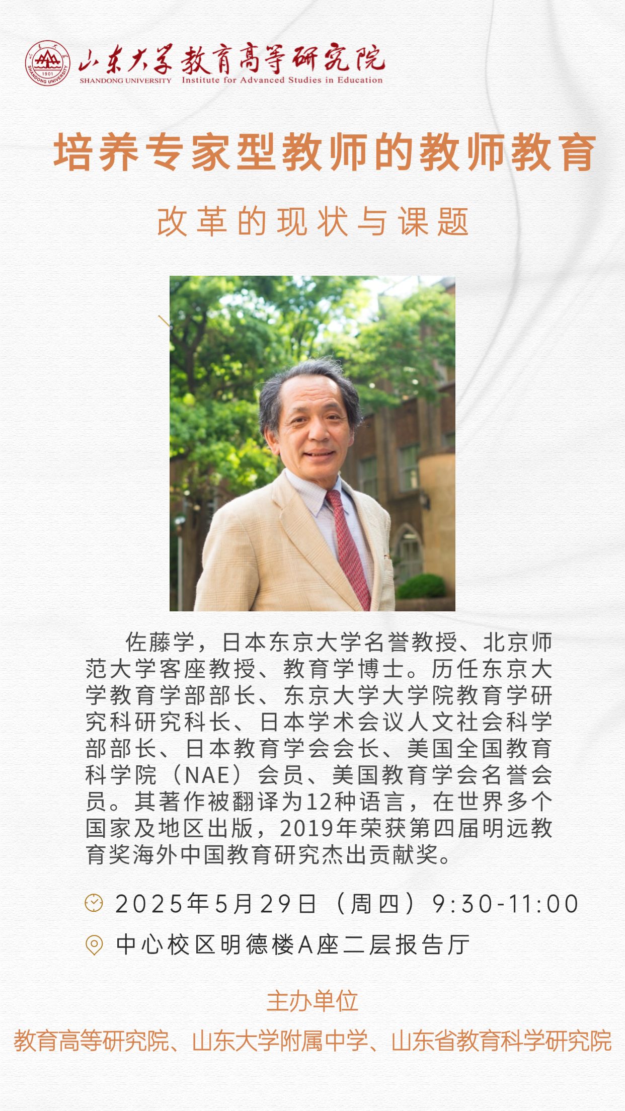 佐藤学,日本东京大学名誉教授、北京师范大学客座教授、教育学博士。历任东京大学教育学部部长、东京大学大比分直播教育学研究科研究科长、日本学术会议人文社会科学部部长、日本教育学会会长、美国全国教育科比分直播(NAE)会员、美国教育学会名誉会员。其著作被翻译为12种语言,在世界多个国家及地区出版,2019年荣获第四届明远教育奖海外中国教育研究杰出贡献奖。其著作中文译著有《静悄悄的革命》《课程与教师》《学习的快乐》《学校的挑战》、《教师的挑战》《教师花传书》《教育方法学》《学校改革—学习共同体的构想与实践》等。